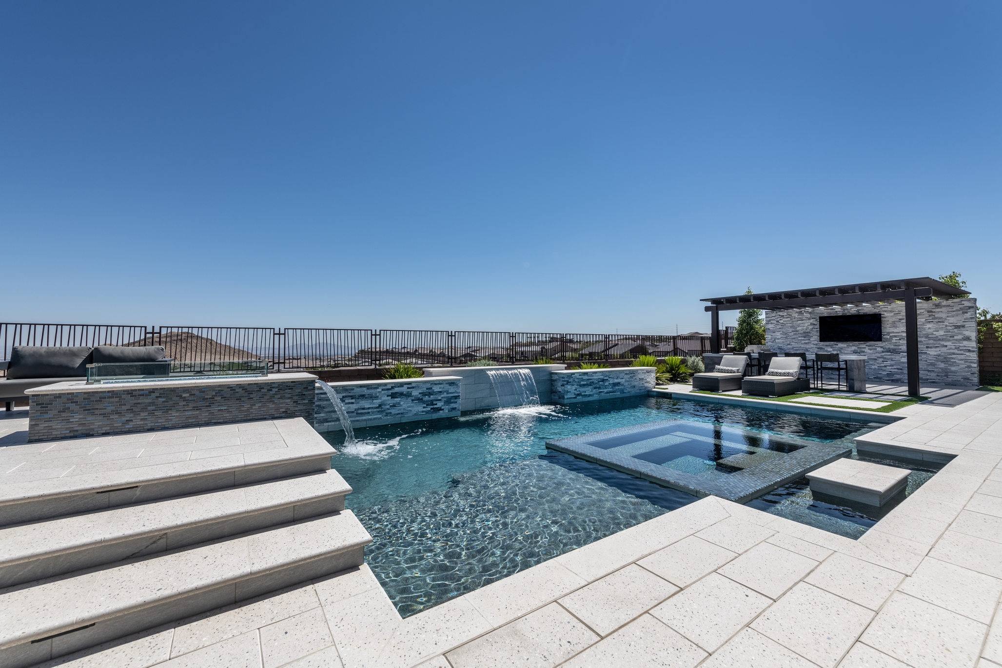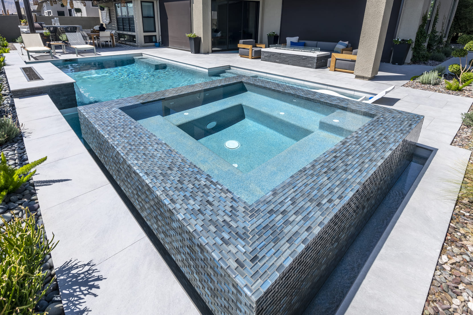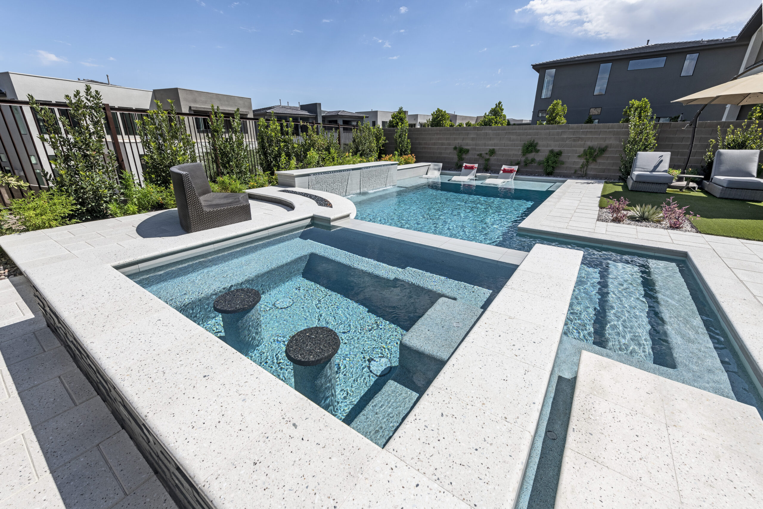 Designed as a stand alone feature or integrated with a pool sharing the water and filtration system, spas offer the benefits of relaxation, improved circulation and relief of sore muscles. Concrete spas have the greatest design flexibility because custom forms can be built in a wide variety of ways and can easily blend into any outdoor living space making it more inviting.